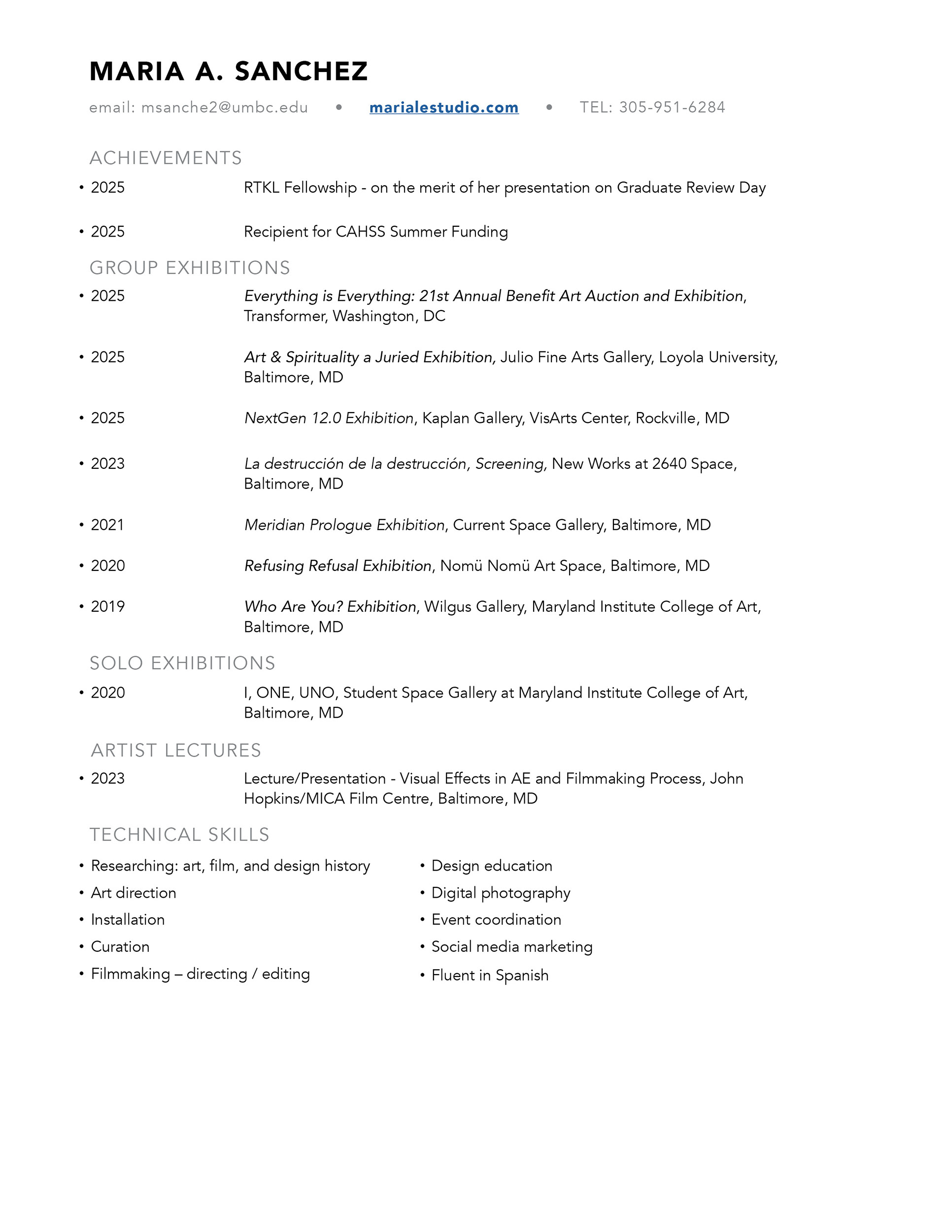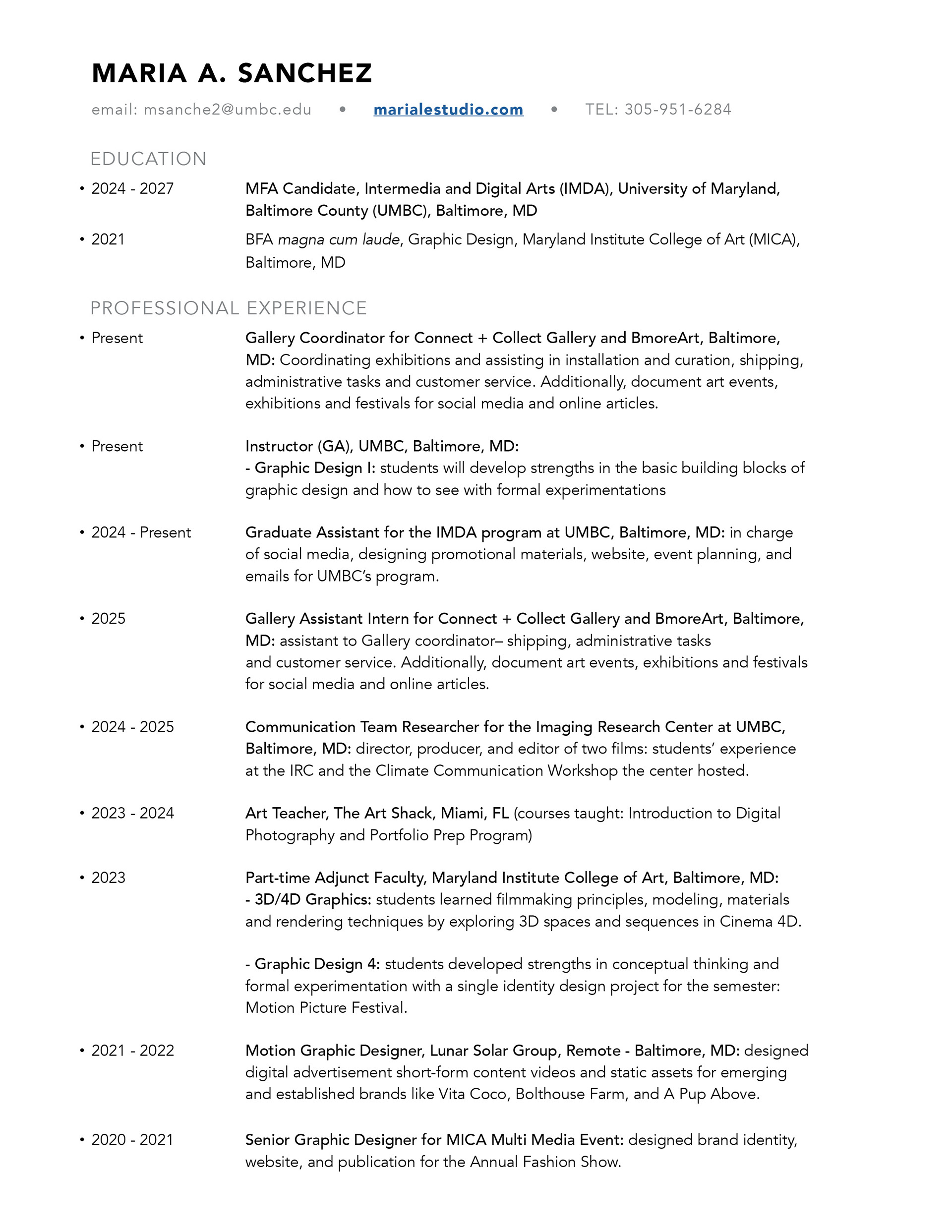 Sánchez is the IMDA Assistant for UMBC and the Gallery Coordinator for Connect+Collect Gallery and BmoreArt.