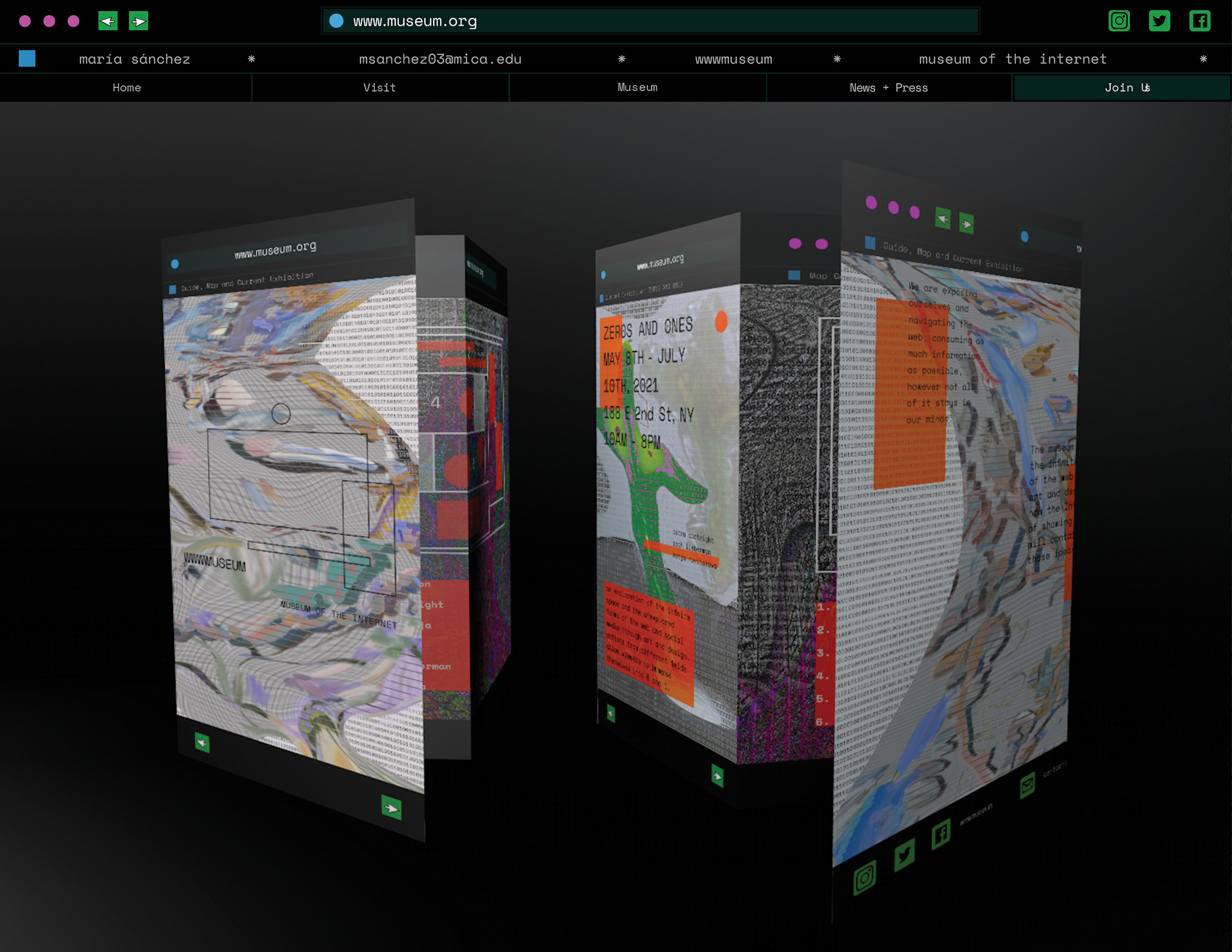 I developed a visual language for a brand identity of an imaginary museum. The investigation focused on the impact of the Internet in our culture. It explores the infinite space and unexplored forms of the web and social media through art and design.